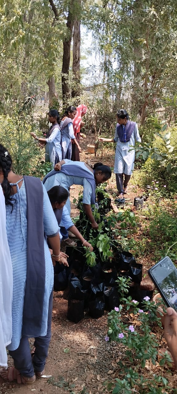 | As a part of curriculum, we have conducted plantation programme students are participated and involved in planting many plants that are propagated through stem and root cuttings. It is included as a part of curriculum as to remind the students their social responsibility of taking proper care of environment. | |