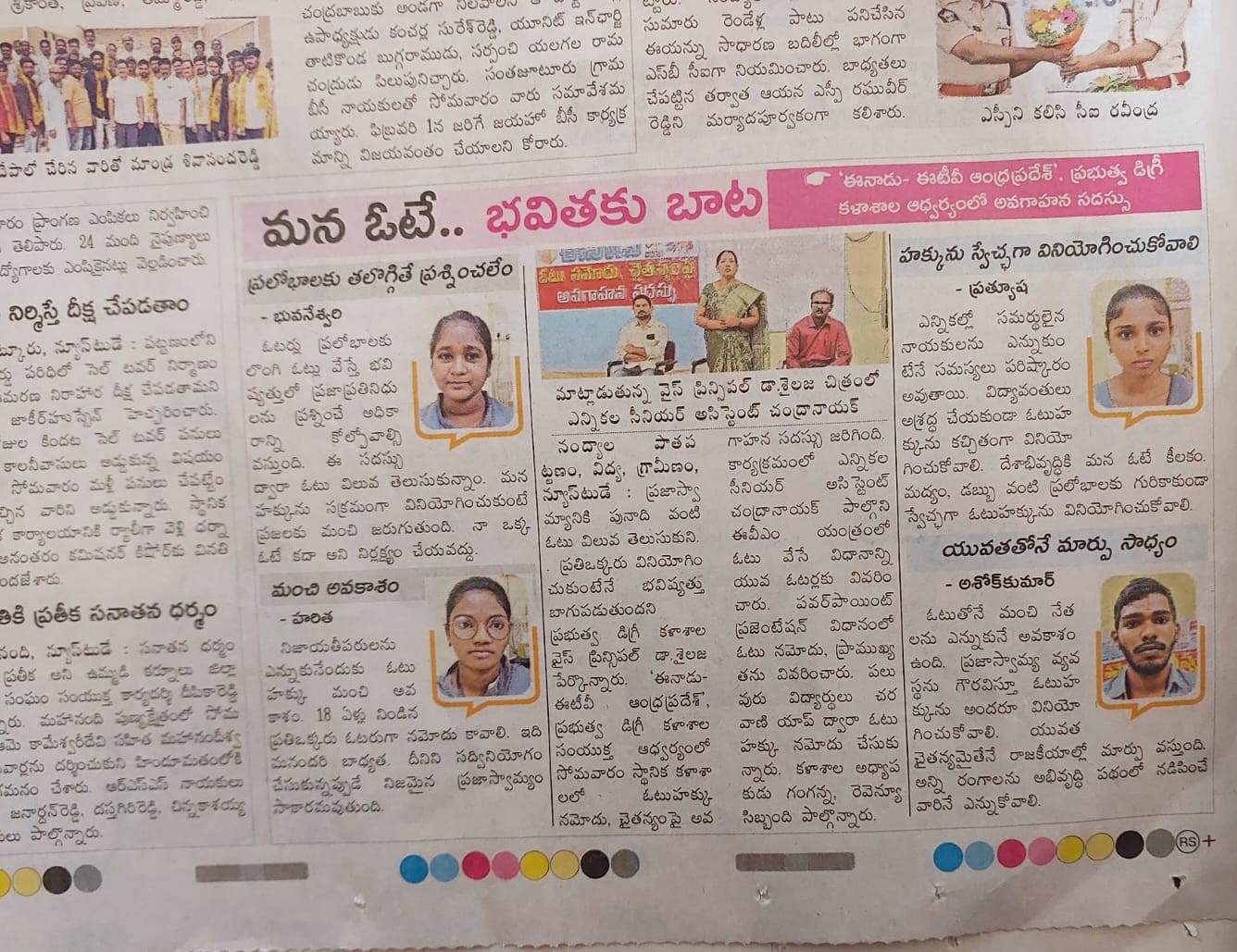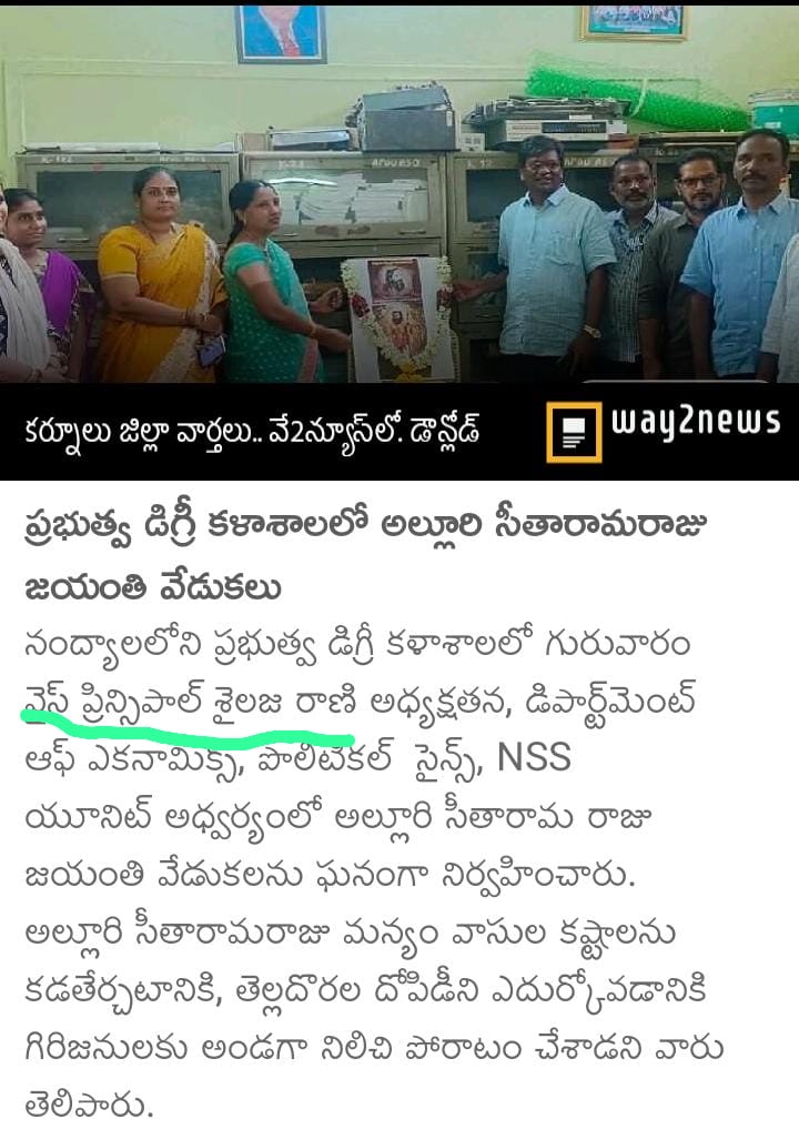 | Smt VJ Sailaja Rani Lecturer in Botany Smt K J Vijaya Lakshmi Lecturer in Commerce Dr M Venkata Lakshmamma Lecturer in Telugu and Teaching Staff | |