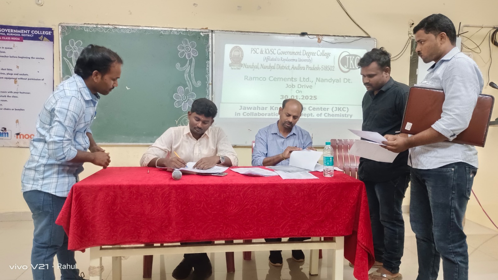 | Department of chemistry in co-ordination with JKC has conducted job mela on 30/01/25 in our college for the B.Sc with chemistry students who have completed B.Sc at a time. students from all over the district attended the job mela. Dr. N. shashikala garu, principal of the college actively supported in successful completion of the programme. | |