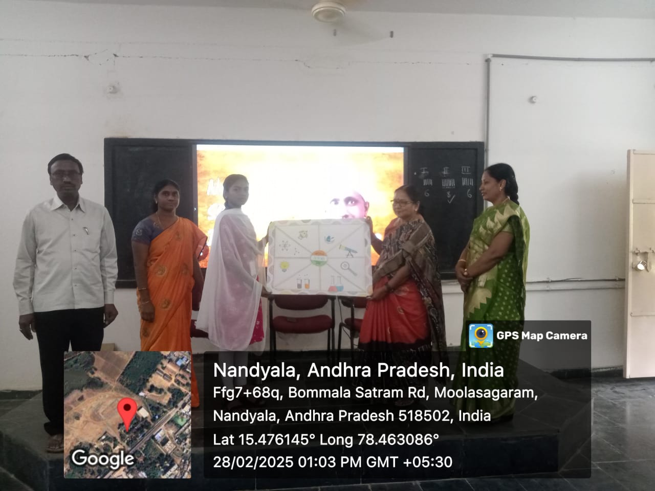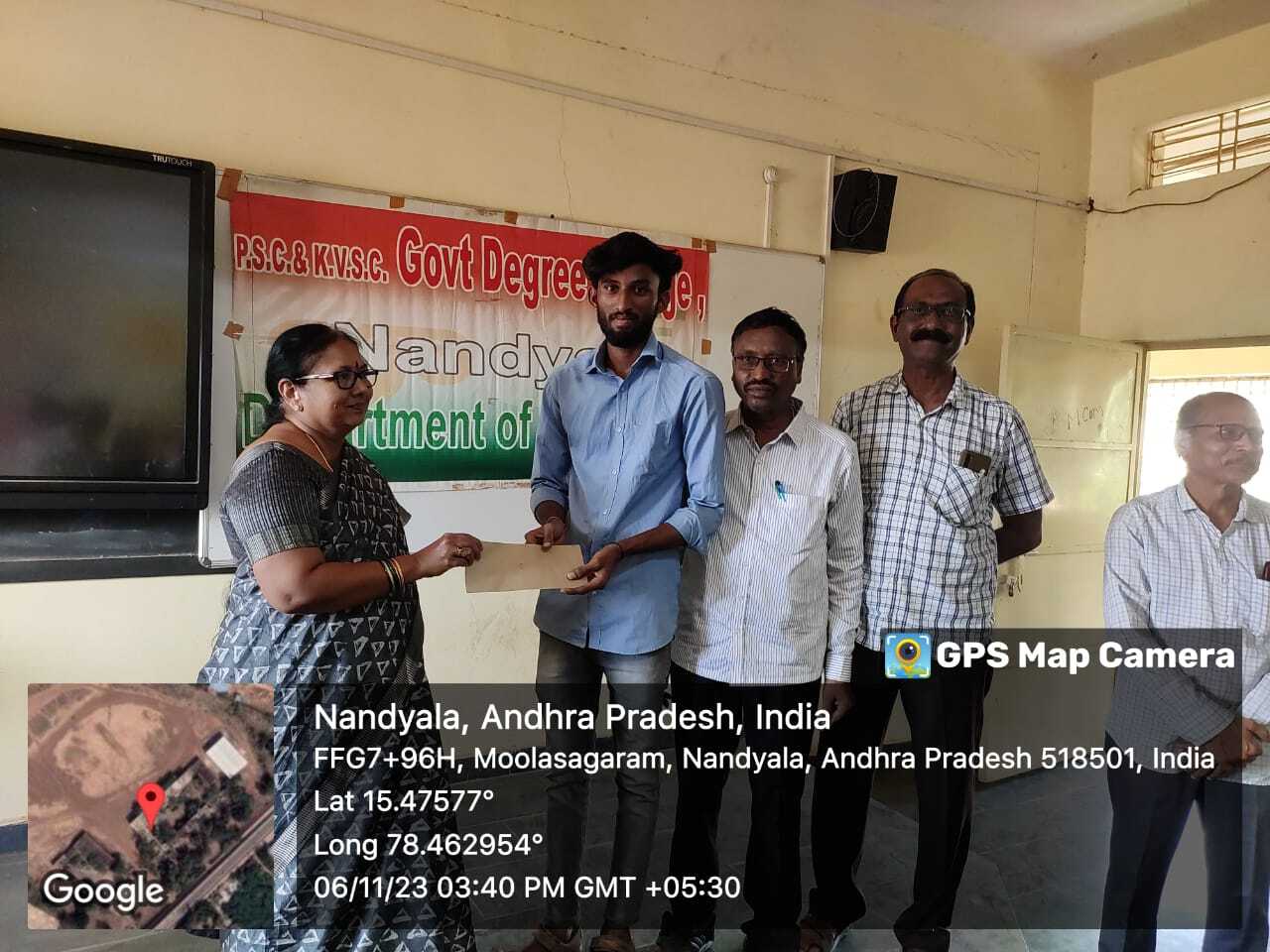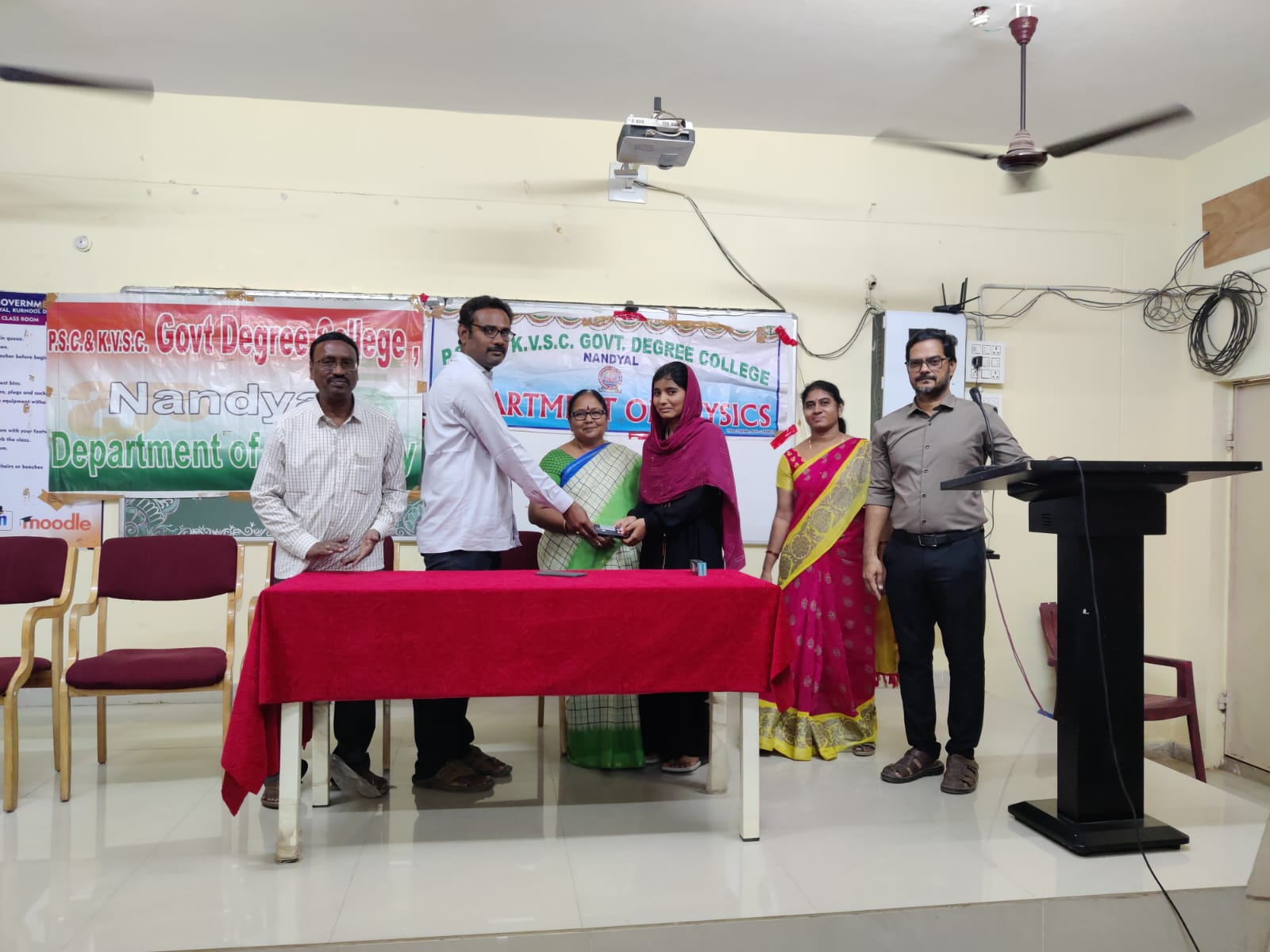 | on the occasional science day department of chemistry has conducted quiz programme with the co-ordination of all science departments. the winner team is presented with gift by Dr. N. Shashikala garu, principal of the college | |