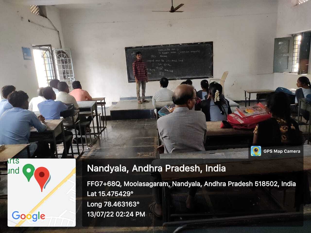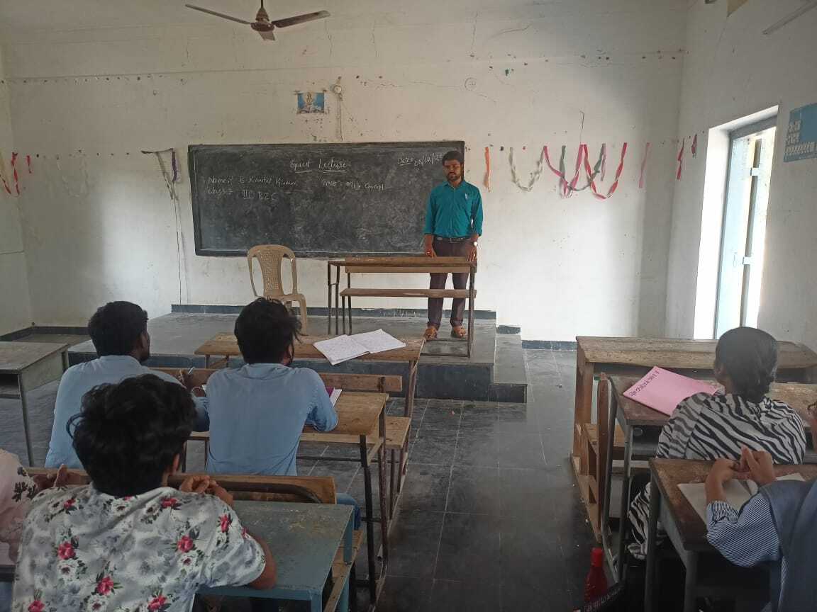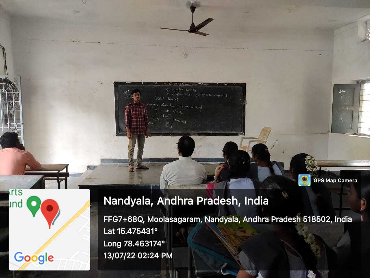 | department of chemistry invited B. Kranthi Kumar to give guest lecture to III B.Sc students on MOLE CONCEPT. He emphasized on basic concepts and gave lucid explanation. | |