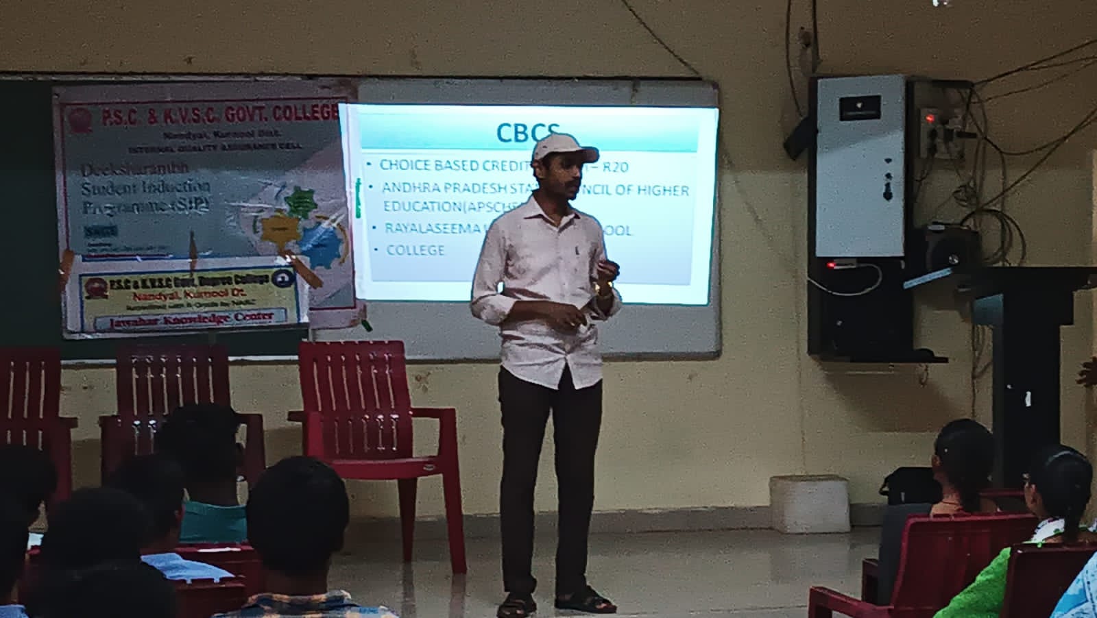 | The IQAC Coordinator of this college explains the CBCS course structure, syllabus, LSCs and SDCs, CSP, Internships to the first year students. This program creates an idea about the UG program in revised frame work. Students listened carefully and clarify their doubts. | |