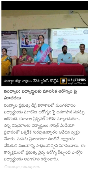 Dr. Sharath Chandra MD,Psychiatrist General Hospital Nandyal, Sri Venkata Rami Reddy Social Worker, Dist. Mental Programme Nandyal, Dr.N. Shashikala, Principal GDC Nandyal