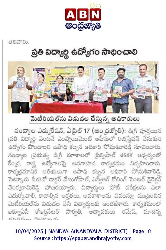 Dr K Venugopal CEO SETKUR, Soma Siva Reddy Dist. Employment Officer, Nandyal, Sri Venkatrami Reddy, SVR Coaching Center, Director