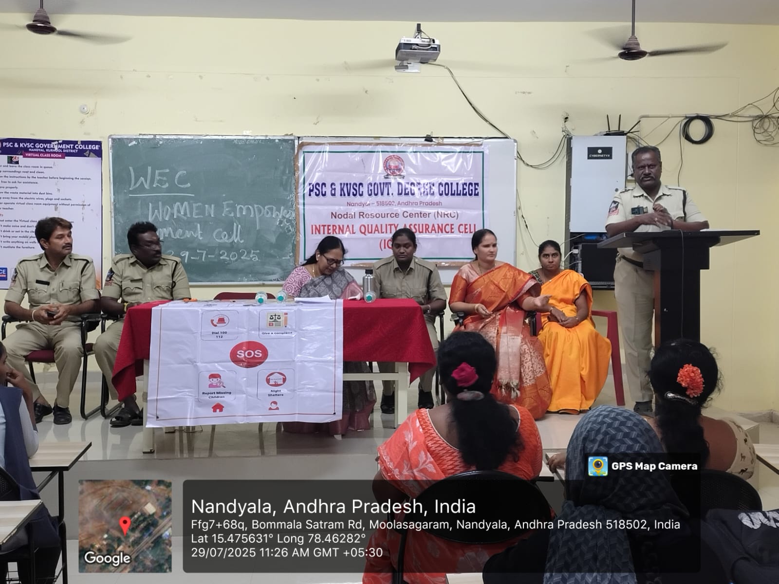| IQAC and Women Empowerment Cell jointly conducted an awareness program on Shakti App and women protection act from domestic violence and cyber crimes by police department Nandyal, III Town. | |