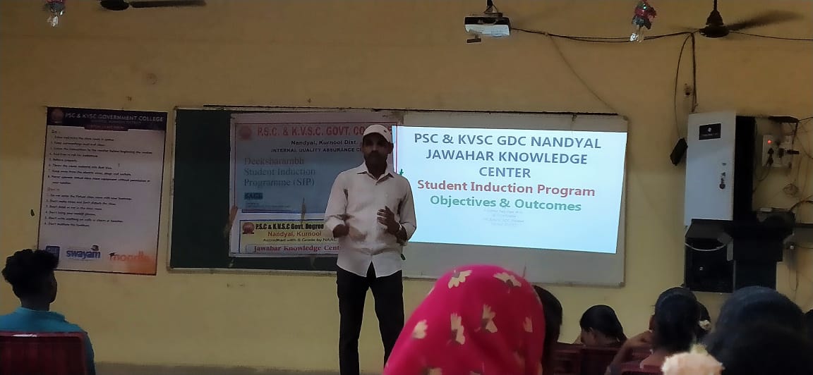 | As a part of SIP for first year students they are enlighten about the skills required for jobs and also explain how the Jawahar knowledge center functioning in the college, offline and online courses etc., The Principal and JKC chairman also explains the importance of JKC registration and its uses. | |