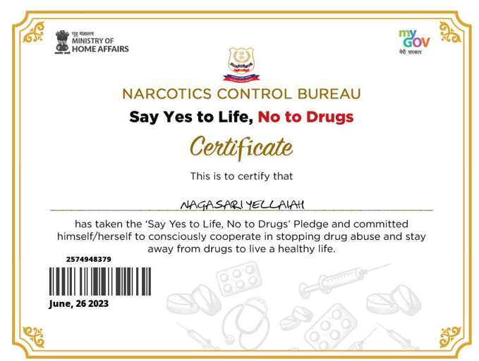 | NCC cadets have taken pledge "Say Yes to Life, No to drugs" initiated by Narcotic control bureau, Ministry of home affairs. | |