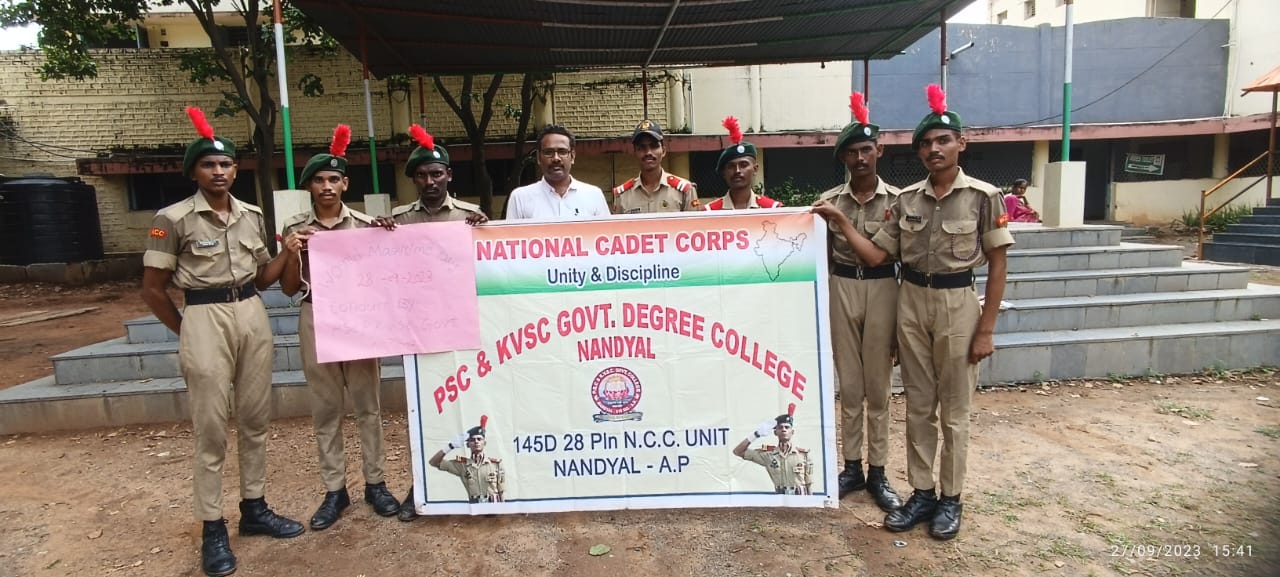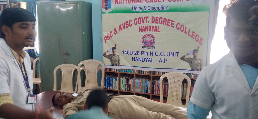 | On the occasion of world blood donor day five cadets from NCC unit of PSC & KVSC Govt. College, Nandyala gave blood at blood donation camp organised at SRDC, Nandyala. | |