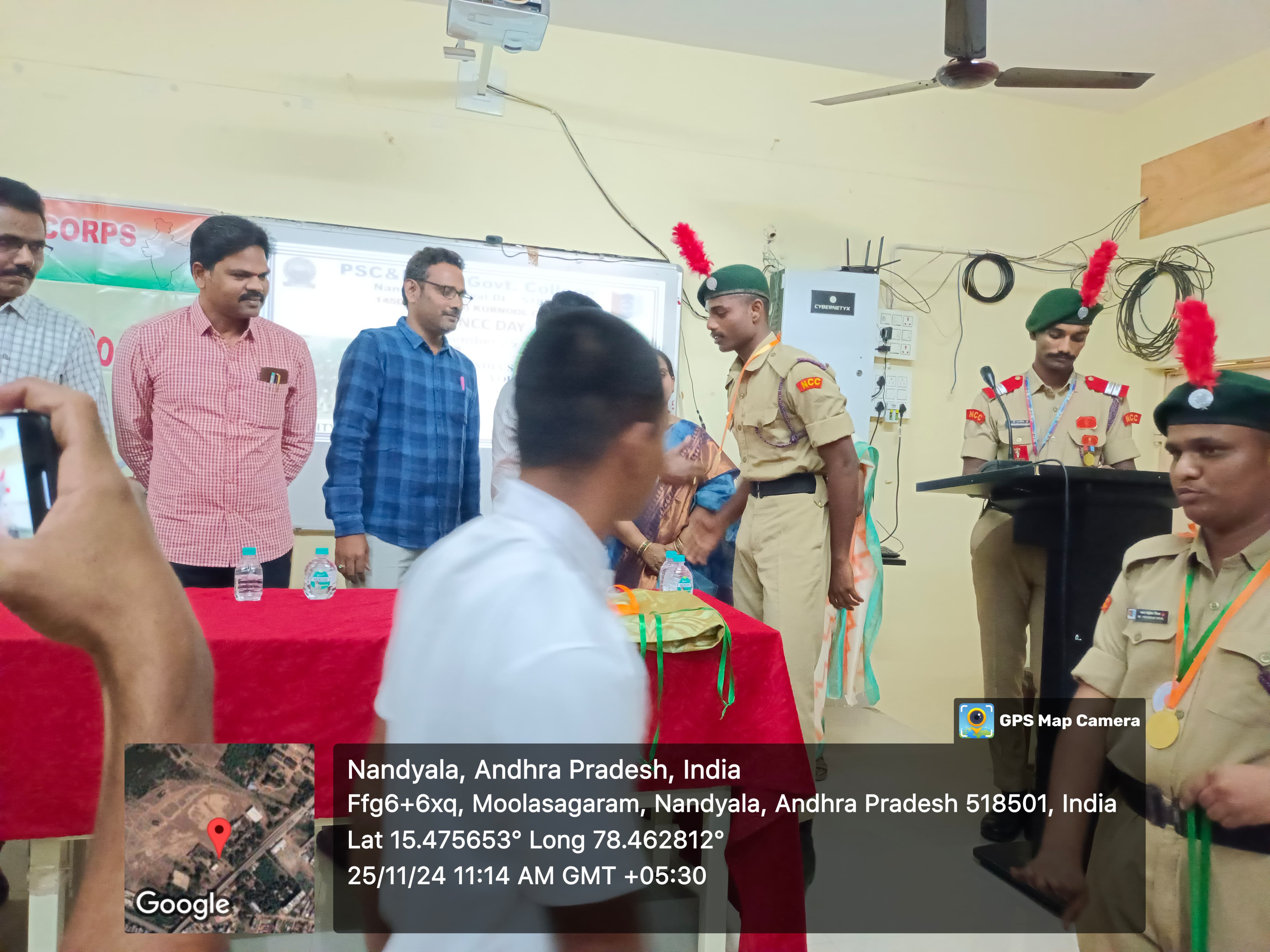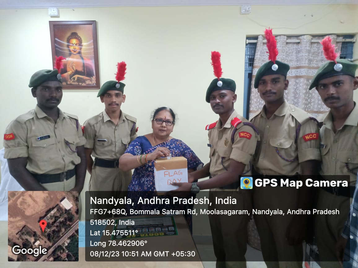 | On the occasion of armed forces flag day NCC unit has collected funds for Armed Forces Flag Fund. Principal N. shasikala Garu and other staff members and students have contributed to the flag fund. | |