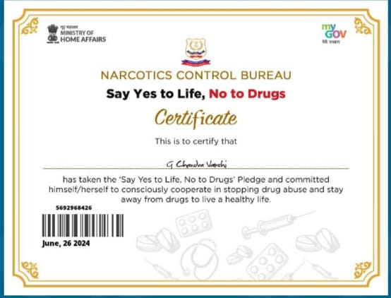 | All cadets of NCC unit took pledge on " Say Yes to Life, No to drugs" initiated by Narcotics drug Bureau, Ministry of home affairs.. committed to stopping drug abuse and stay away from drugs to live a healthy life. they participated in online campaign against drugs. | |
