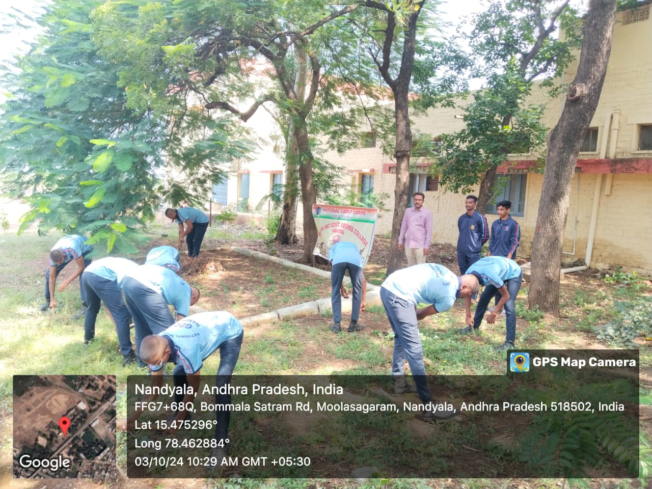 | NCC cadets cleaned campus premises as part of swatch bharath campaign on the occasion of gandhi jayanthi. then planted trees in the campus. | |