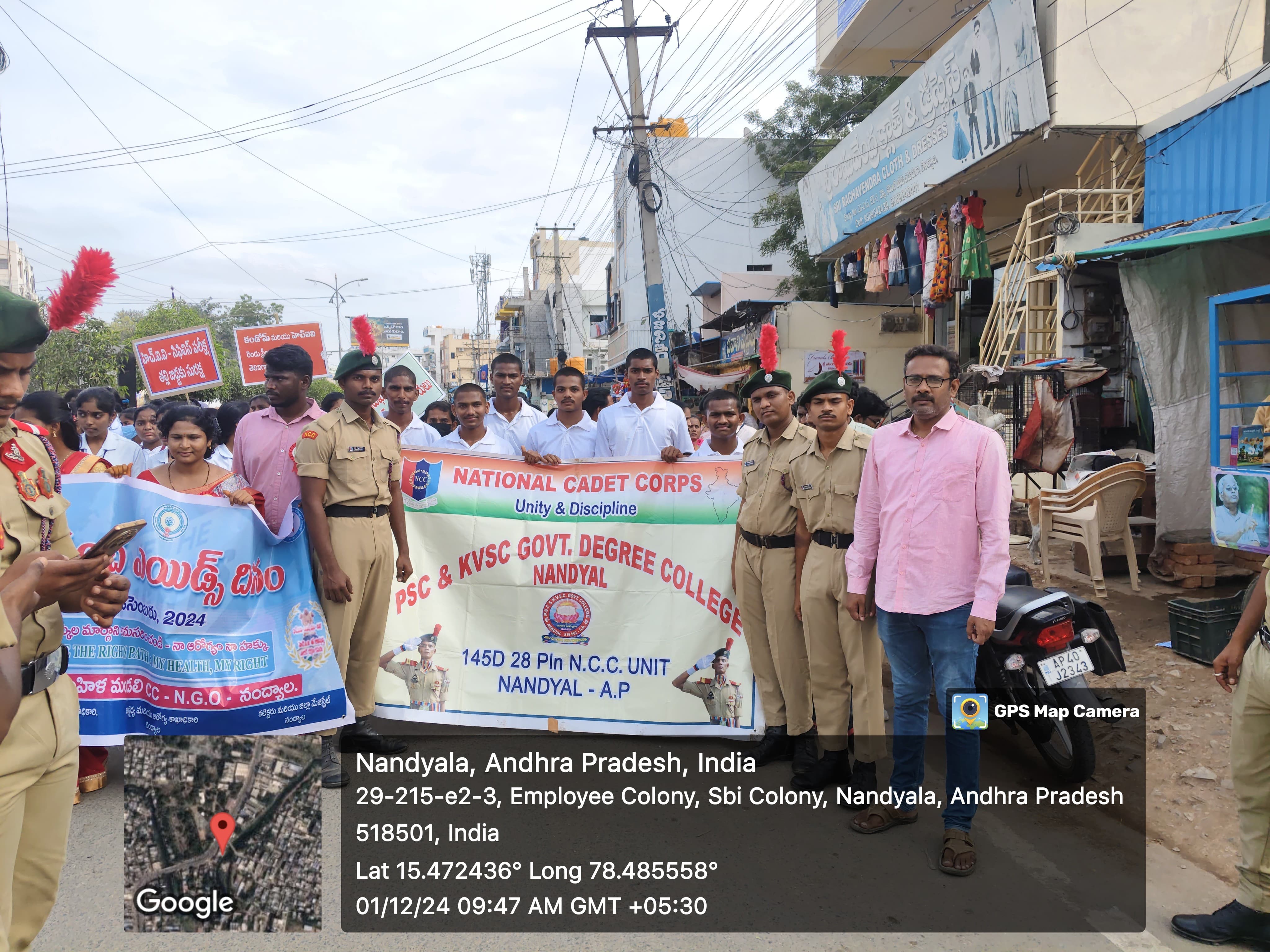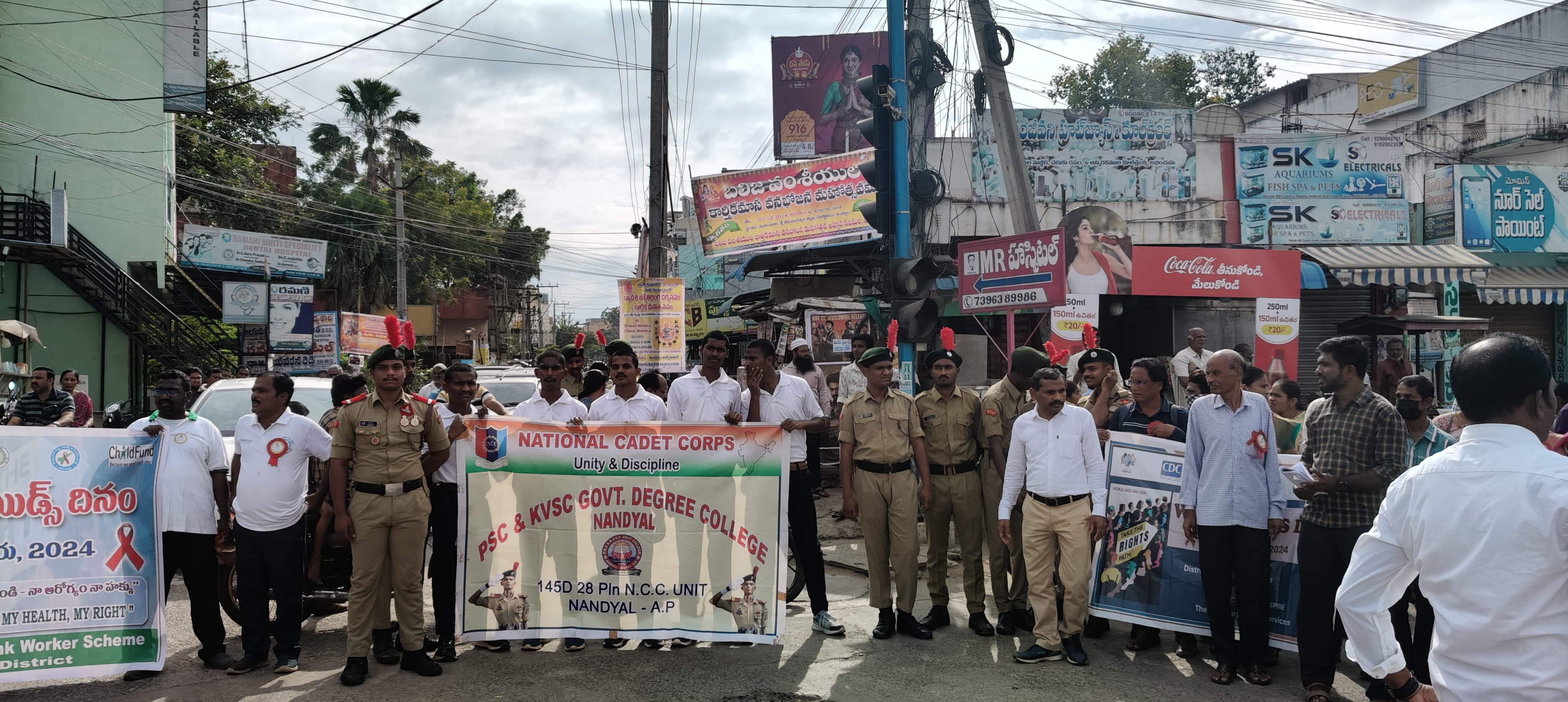 | NCC cadets have participated in rally from General hospital, Nandyala to spread awareness on aids. Smt. G. Raja kumari garu, district collector stressed on increasing AIDS cases in district and need for more awareness and efforts. | |