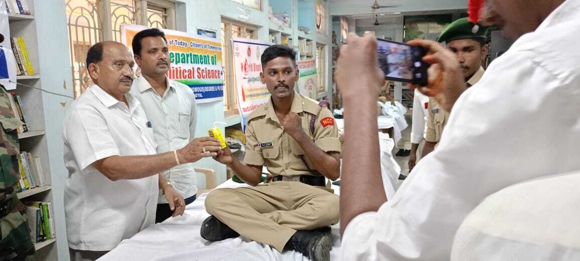 | on the occasion of national blood donors day ten ncc cadets have donated blood at blood donors camp organised at Ramakrishna degree college, nandyal | |