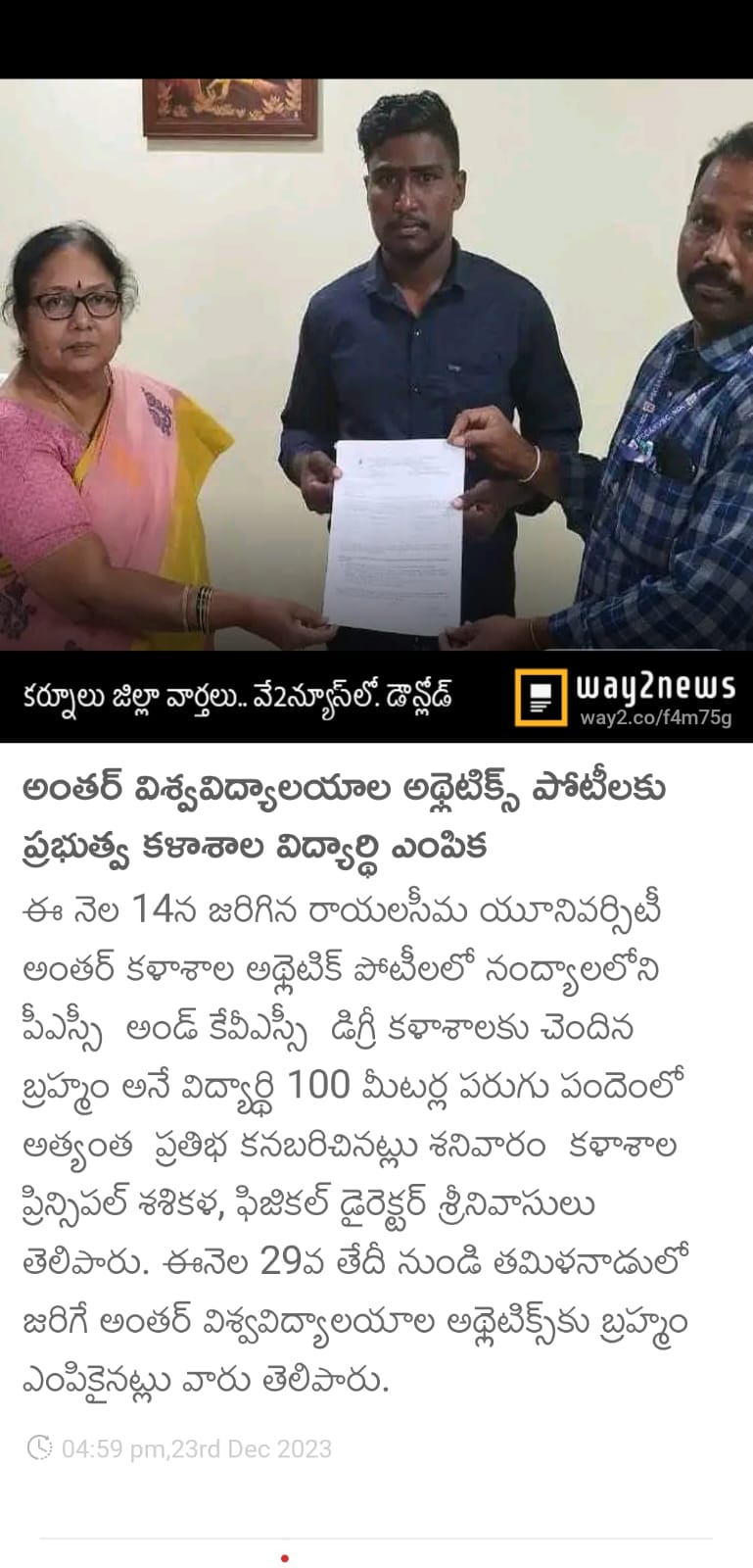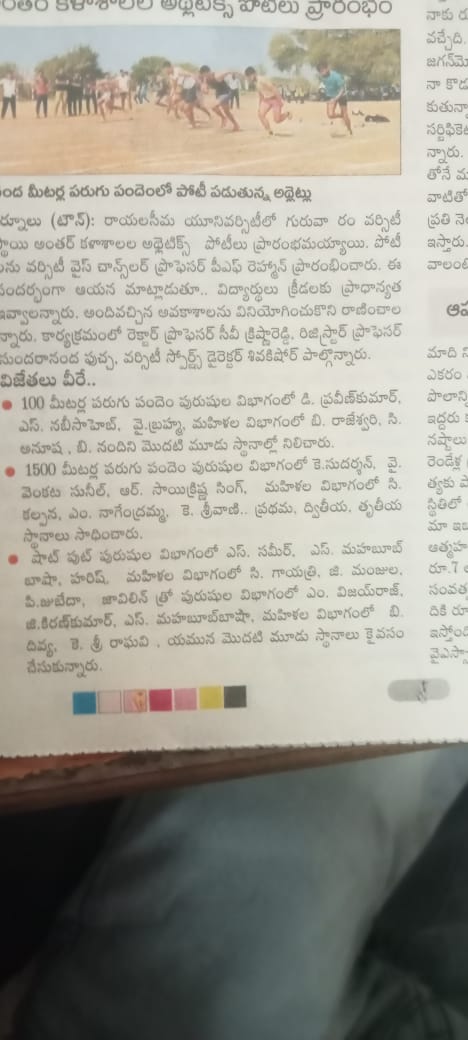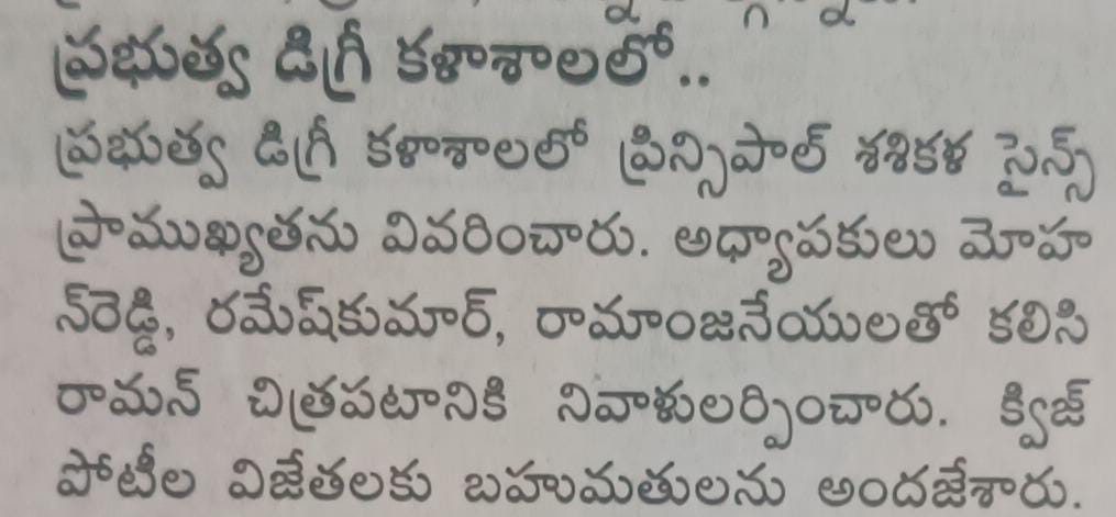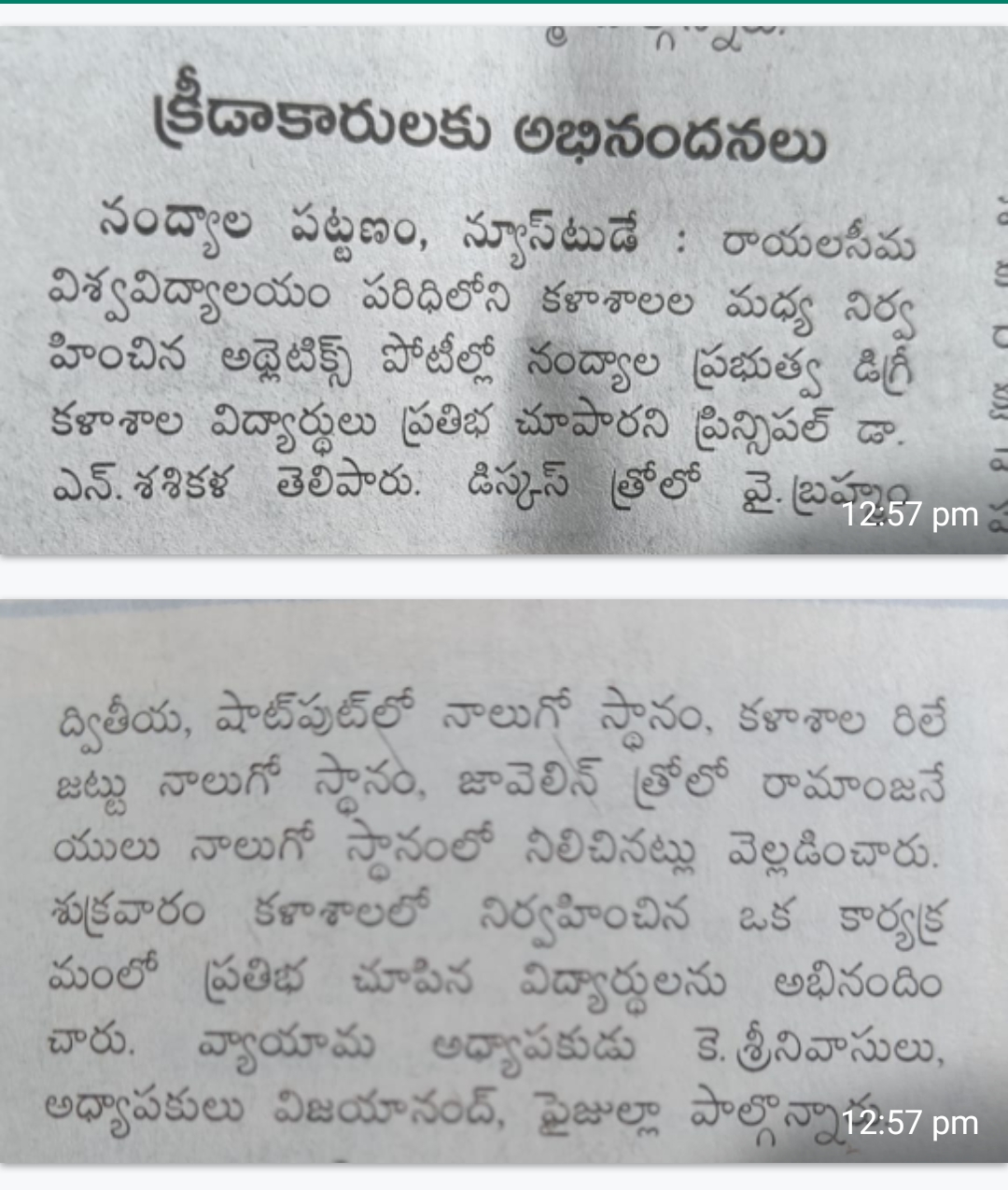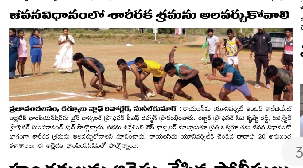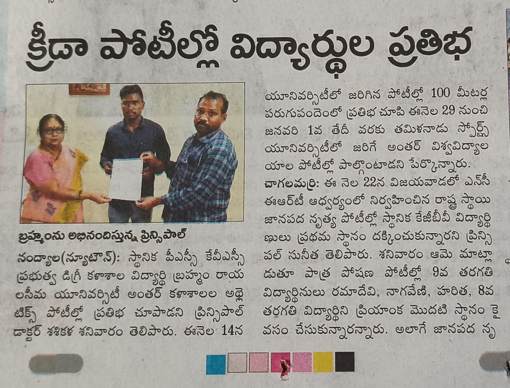 Physical education - National Gold Medal in Kabaddi S . Soma sekhar Goud I B.Sc (MECS) bagged gold medal in the game Kabaddi event age category 19 hel
