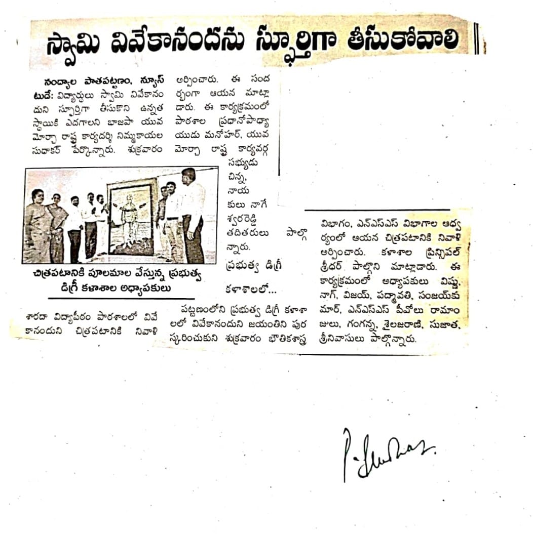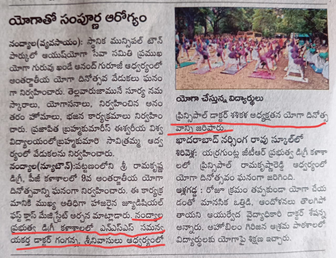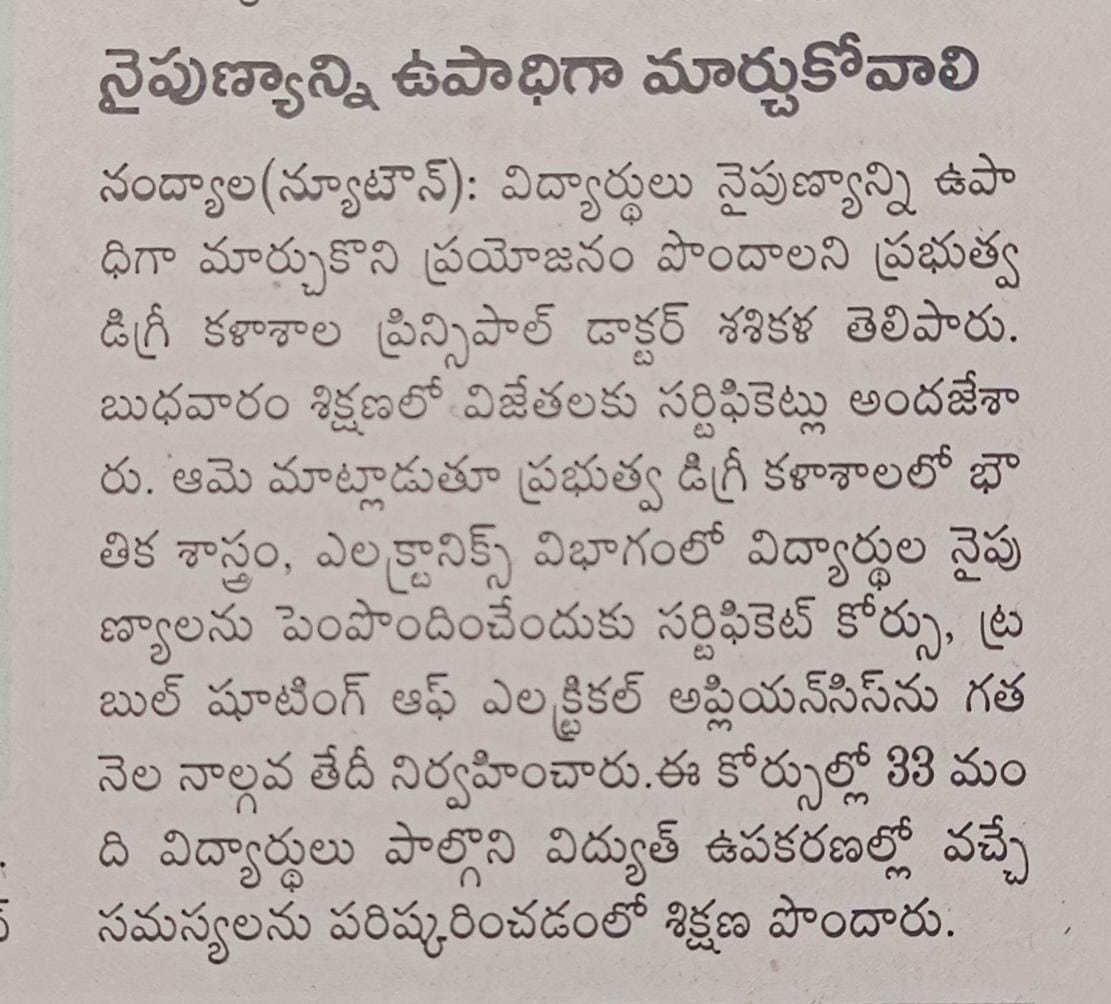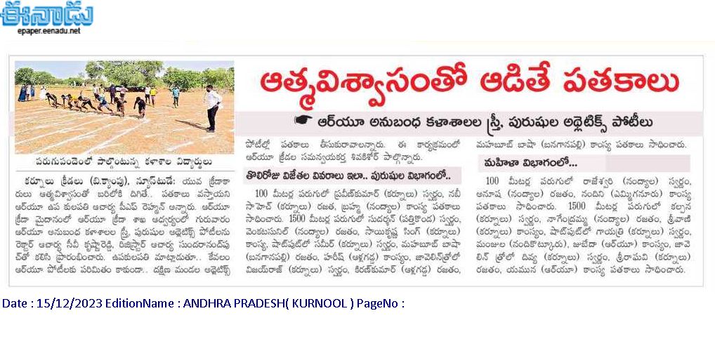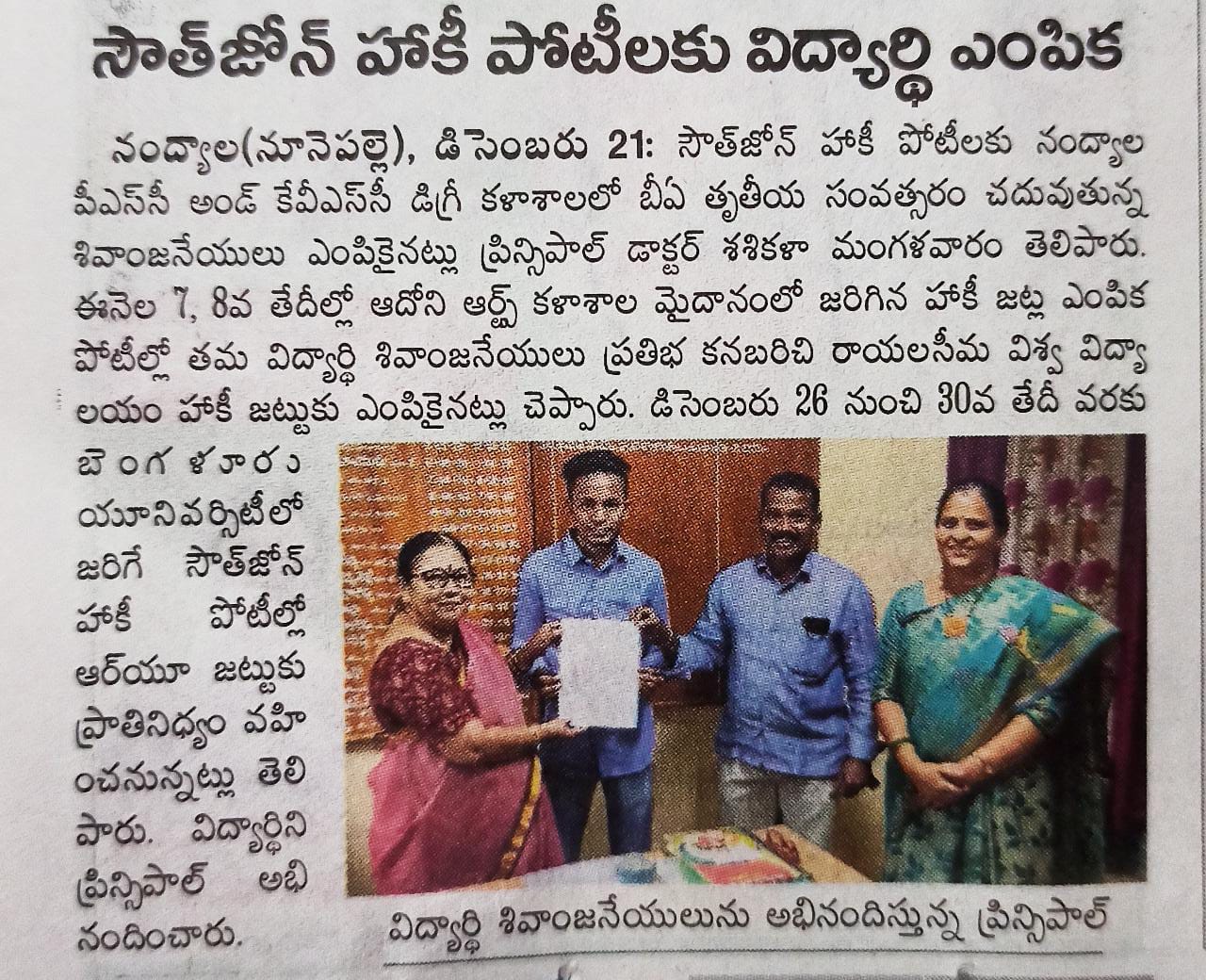 Physical education - National Gold Medal in Kabaddi S . Soma sekhar Goud I B.Sc (MECS) bagged gold medal in the game Kabaddi event age category 19 hel