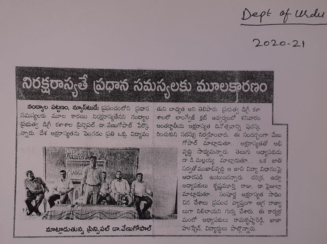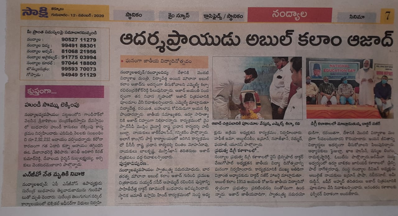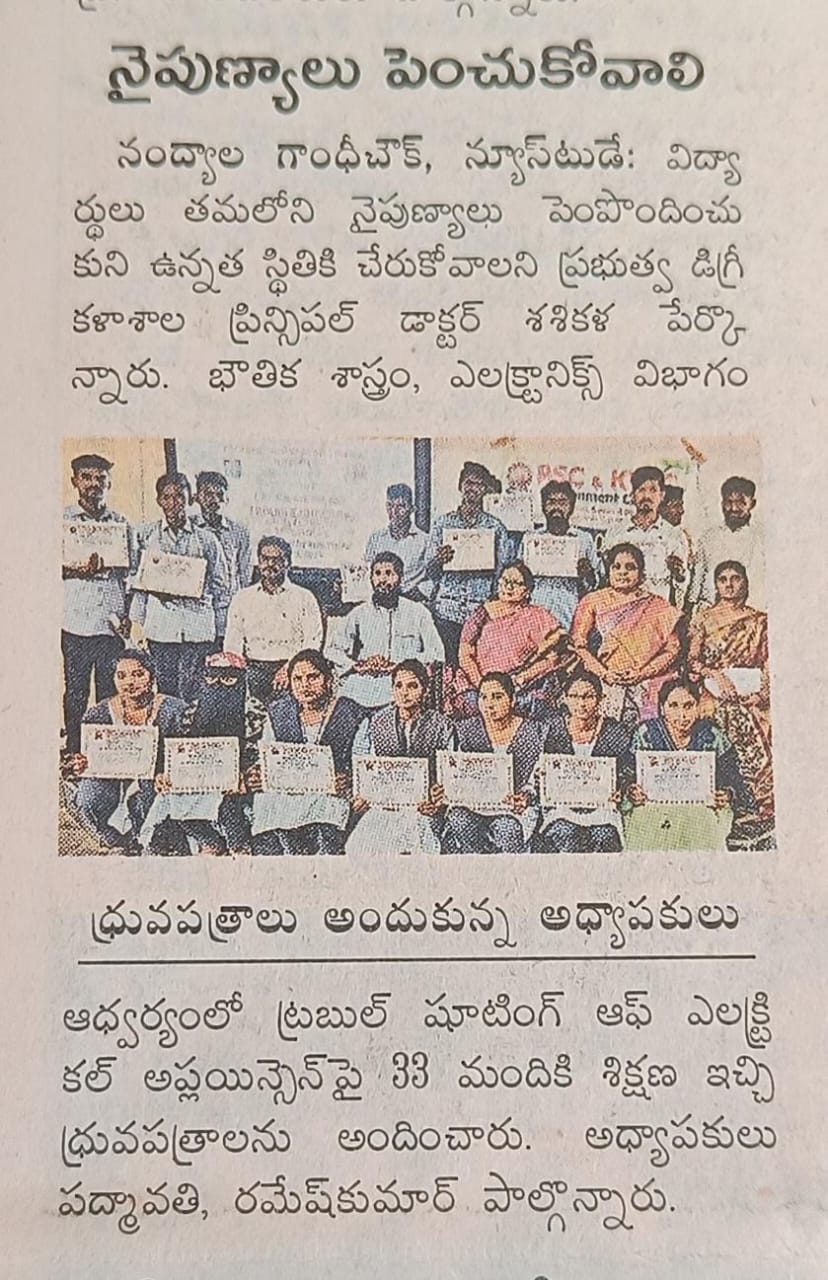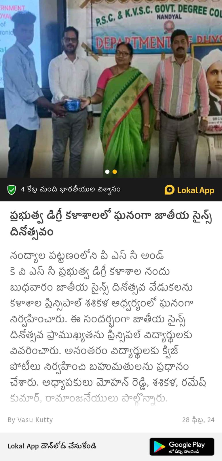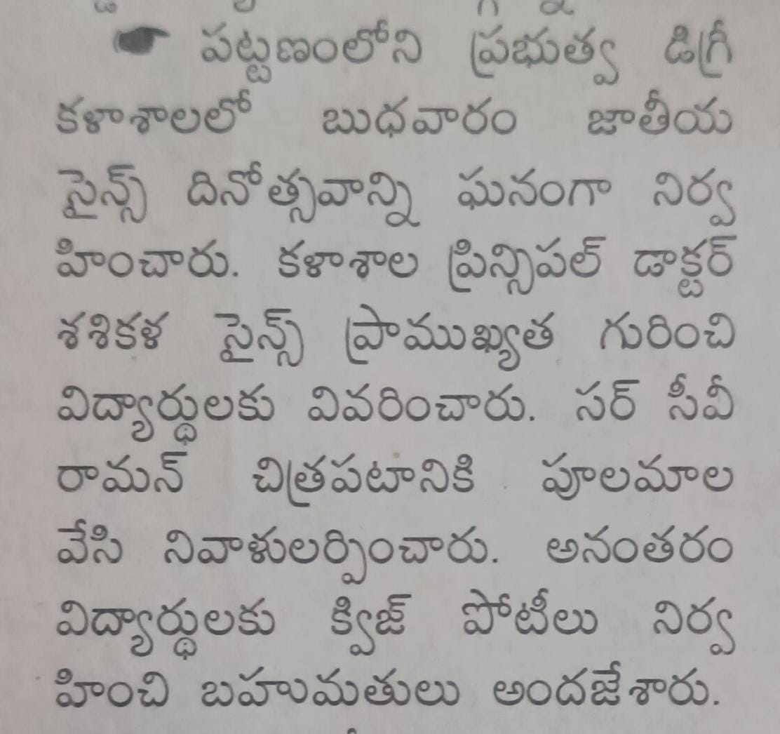 Physical education - National Gold Medal in Kabaddi S . Soma sekhar Goud I B.Sc (MECS) bagged gold medal in the game Kabaddi event age category 19 hel