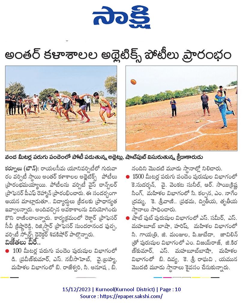 Physical education - Selected for R U S Z I U T Athletics championships 23-24