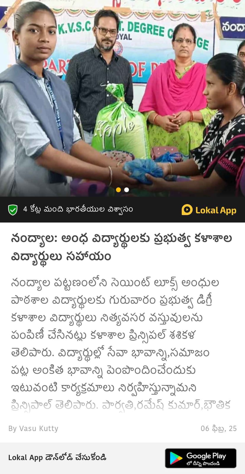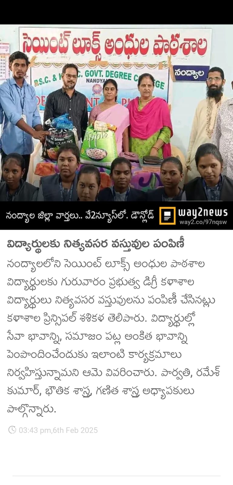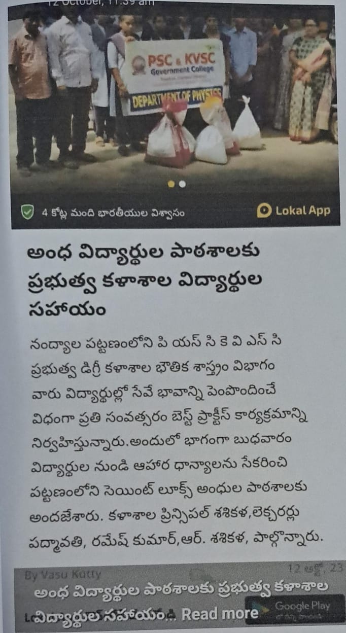 Physics- Rice collection and Donation to the St.Luke Blind School, Nandyal 11.10.2023