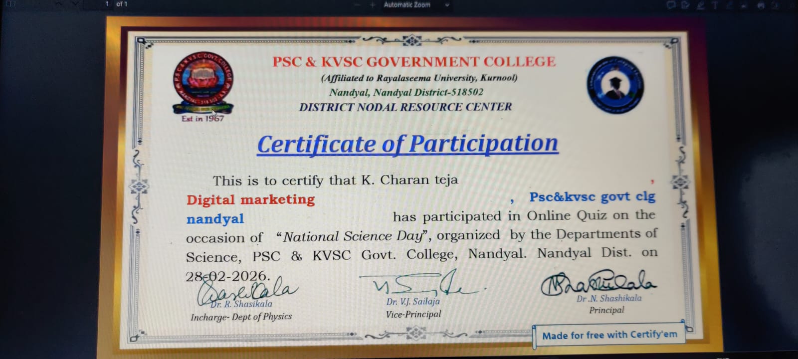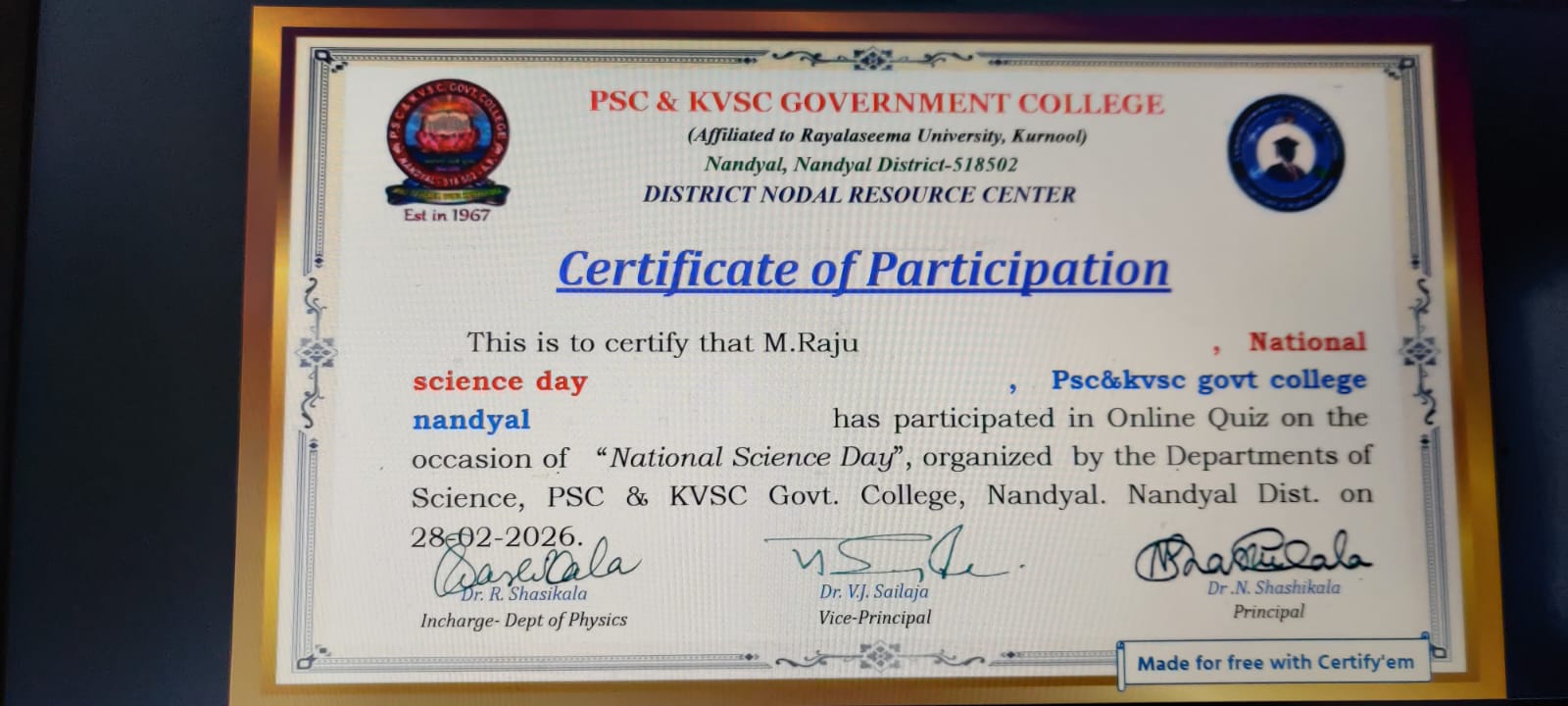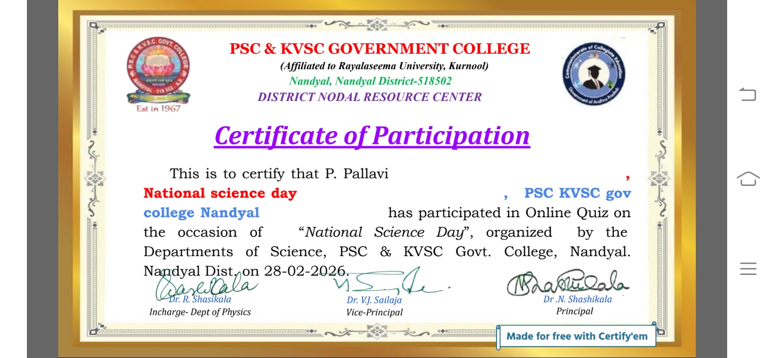Student Participation National Science Day Online quiz 28 02 26