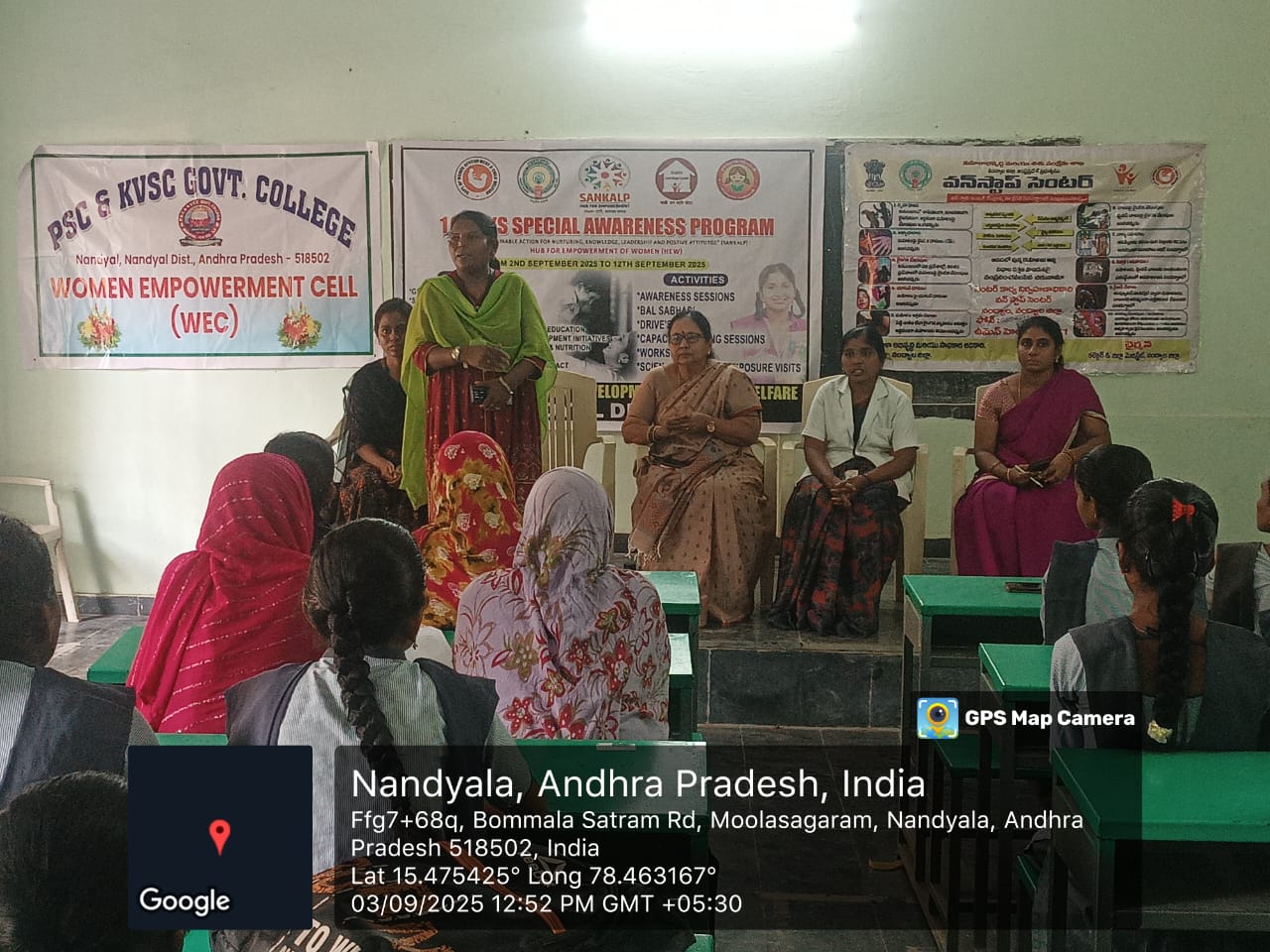 In collaboration with the Department of Youth Services WEC organised an awareness Programme on Drug Abuse cyber crimes eye teasing women trafficking o